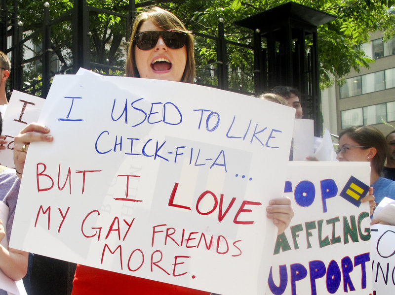 En 2012 la empresa se volvió a ver envuelta en un escándalo cuando el CEO, Dan Cathy, confirmo que la cadena estaba en contra del matrimonio igualitario. Aquello desencadenó que varias personas protestaran frente a sus sucursales e incluso el alcalde de Boston, Thomas M. Menino, sugirió no se contará con la cadena de comida en esa ciudad.