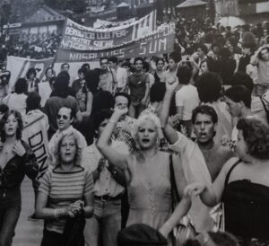 Las mujeres trans encabezan la protesta junto al primer colectivo de lesbianas dentro de una organización LGTBI, además de políticos y sindicalistas, buscando la derogación de aquella maldita Ley de Peligrosidad y Rehabilitación Social aprobada durante el régimen franquista, la cual condena no solo los actos sexuales, también las asociaciones, encuentros y cualquier expresión que indique una tendencia homosexual, lo que conlleva a encarcelamientos, que van desde los tres meses, en el mejor de los casos, hasta los tres años o más; o internamientos en centros psiquiátricos en donde son “reeducados” mediante terapia de aversión, en donde te exponen a estímulos homosexuales aplicándote descargas eléctricas.