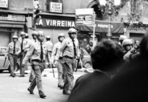 Cerca de la Font de Canaletes, los grises, la policía local, arremete con balas de gomas, hay tres heridos graves y uno golpeado y encarcelado durante cincuenta y seis días en la Cárcel Modelo de Barcelona, Oriol Martí, militante de OCE (Bandera Roja), organización adherida a la manifestación.