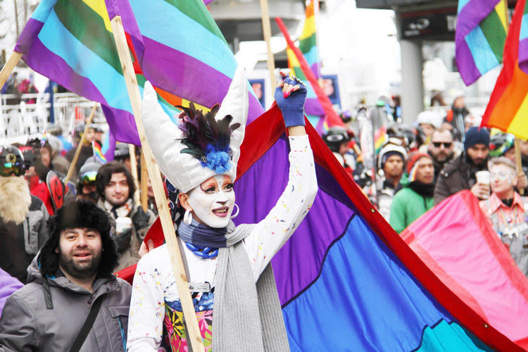 Sin duda una de las actividades más destacadas del festival es el desfile en el que participan un poco más de 100 personas esquiando o practicando snowboarding en la montaña, portando banderas del orgullo. Cuando llegan a la pequeña aldea son recibidos por los demás invitados para así continuar la fiesta.