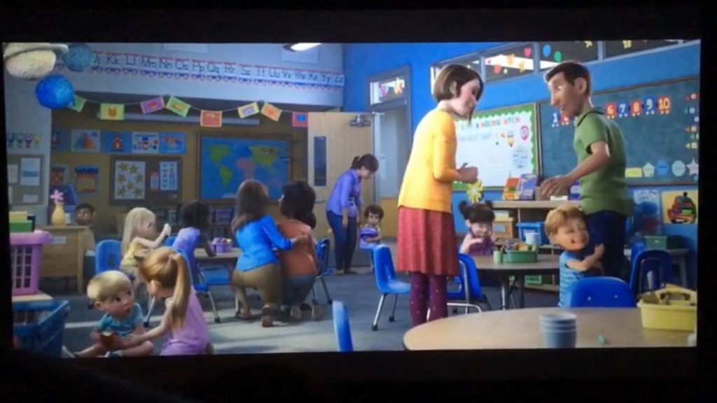“Bonnie” llega por primera vez al jardín de niños, si bien, ella y sus papás se encuentran en primer plano, en el fondo se observa a dos mujeres despidiéndose de su pequeño. Cuando finaliza el día, las mamás reaparecen para recoger a su hijo, quien les da un abrazo.