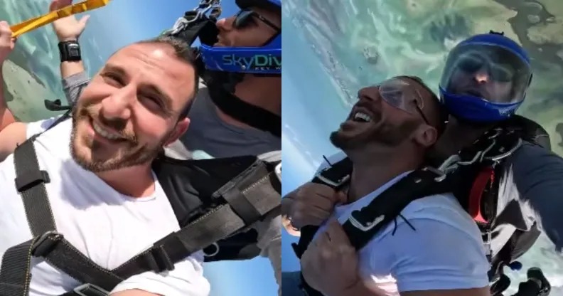 Mira el momento épico en el que un hombre le propone matrimonio a su novio saltando de un avión para él