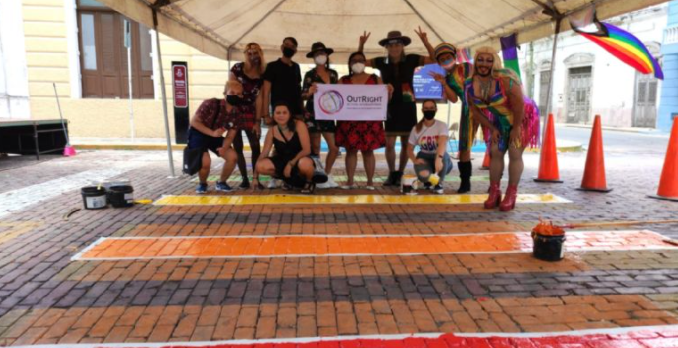 La colectiva, Comando Trans Interseccional, la asociación civil, Igualdad Sustantiva Yucatán, así como activistas, se unieron la mañana del pasado domingo para realizar una intervención al paso peatonal del cruce de la calle 50A con 57 en La Mejorada, de la ciudad de Mérida, con los colores de la bandera arcoíris.