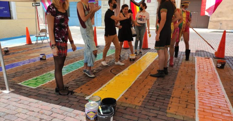 Pintan paso peatonal con colores de la bandera arcoíris en Mérida