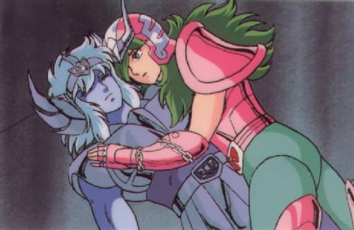 Momento polémico: escena donde calienta a Hyoga para revivirlo con el calor de su cuerpo.