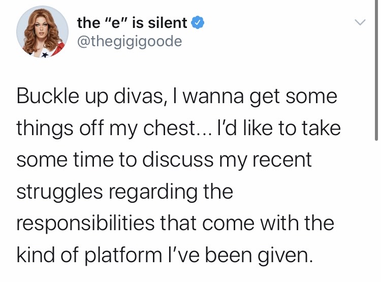 Gigi utilizó la frase (que era tendencia en Twitter) para expresar su emoción por la final de #DragRace, en la cual competirá este viernes 29 de Mayo. Esto despertó enojo entre los usuarios pues Gigi estaba usando una frase de protesta en un contexto ajeno a lo que había pasado. Muchos incluso pensaron que se estaba colgando de la tendencia de la frase con el fin de auto promocionarse, con una total falta de respeto y empatía.