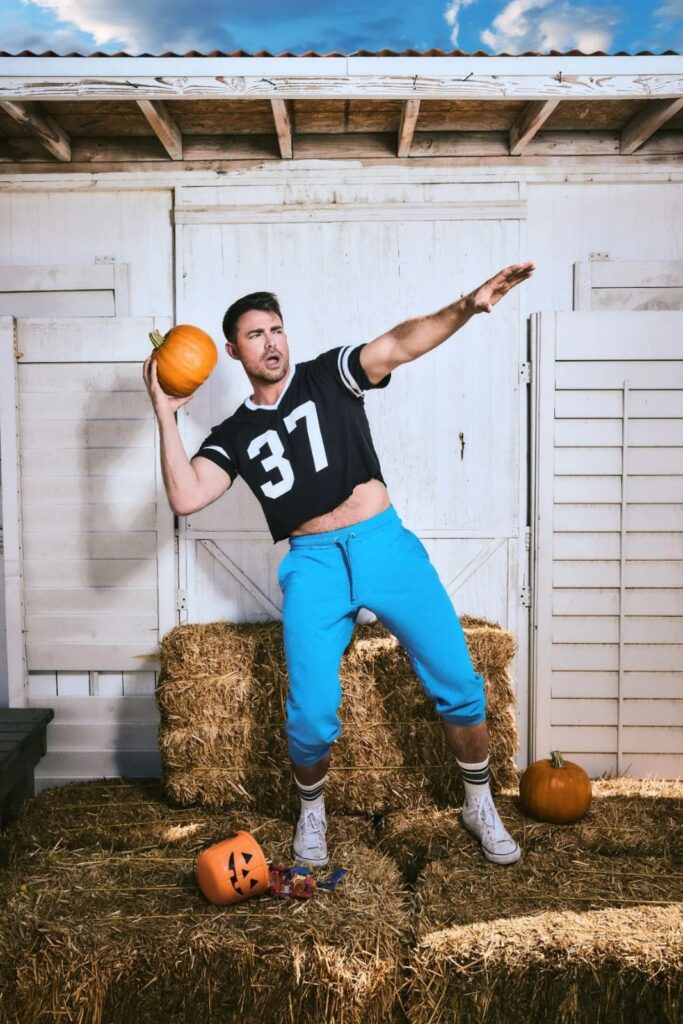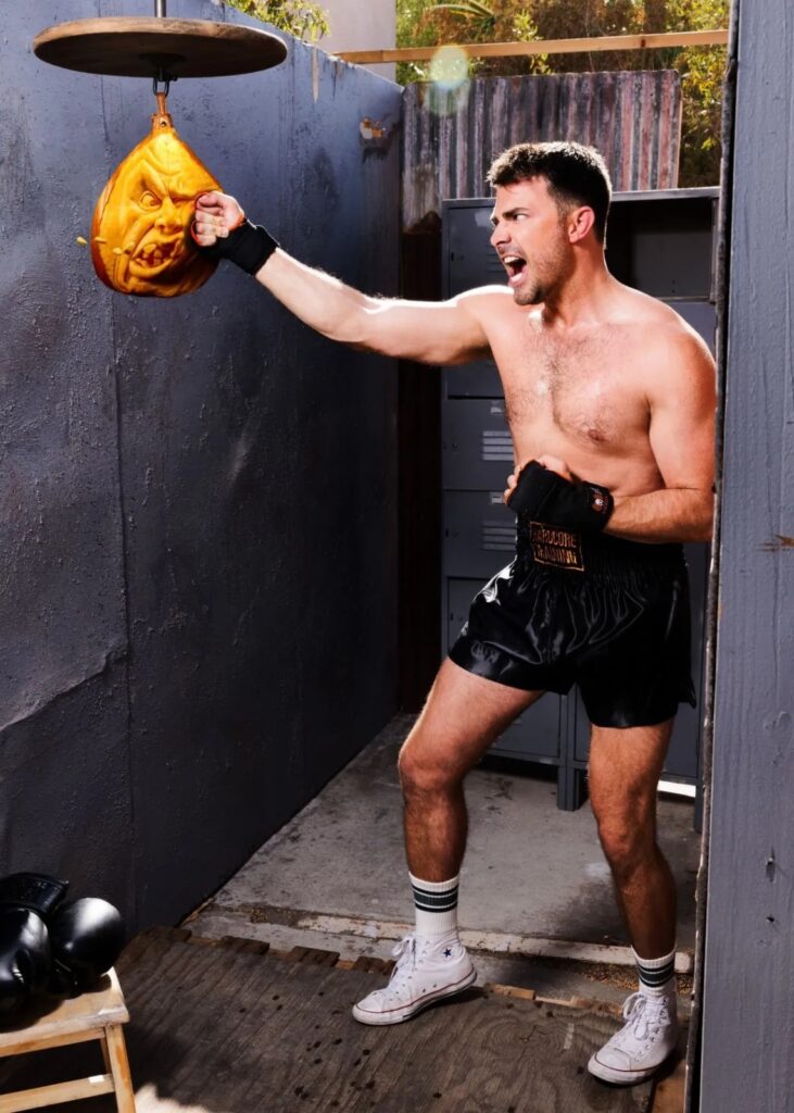 Pero, antes de que lleguemos a esa época. El actor ha sorprendido con dos sesiones de fotos, una en donde es un sexy boxeador y otra posando con un crop top con temática halloweenesca.