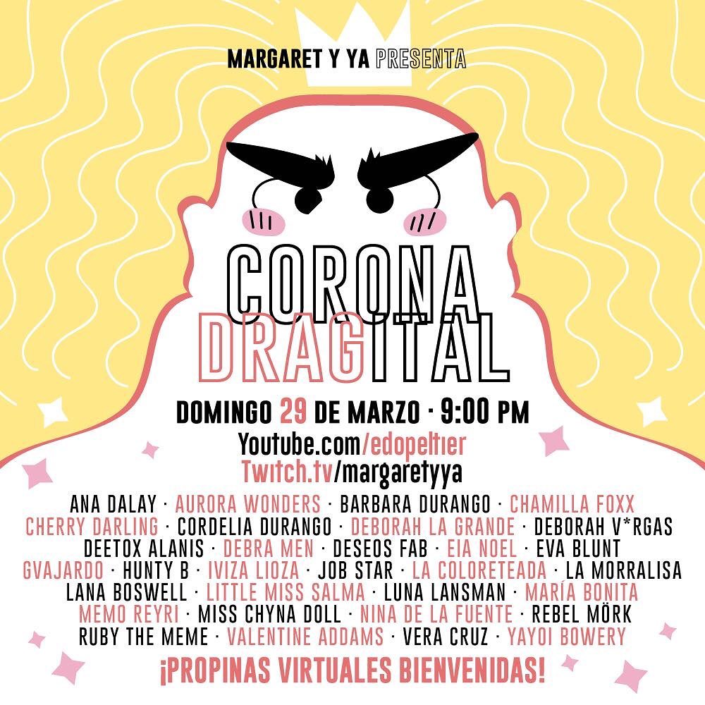 El Corona Dragital es el primer festival drag digital completamente mexicano, “todas las performers somos mexicanas, somos de todas partes del país, desde la CDMX, pasando por Monterrey, Guadalajara y más lugares, incluso hasta de Chicago”, mencionó Margaret y Ya.