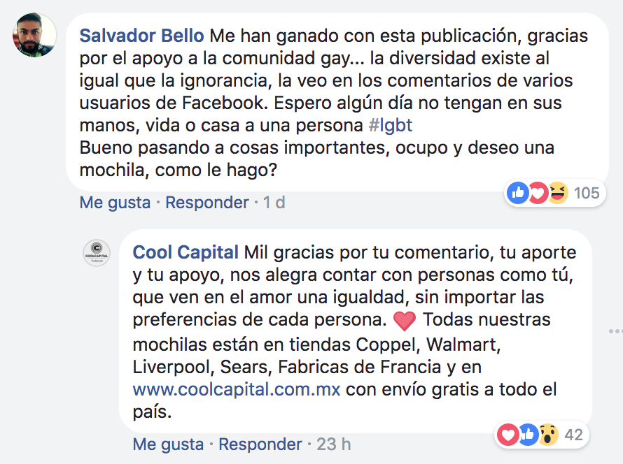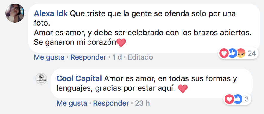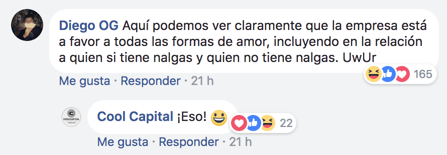 De manera sorprendente, la mayoría de los comentarios fueron positivos y apoyando al amor. Y los fue no lo fueron tanto, el o la community manager de la marca se encargó de contestarles de manera fenomenal.