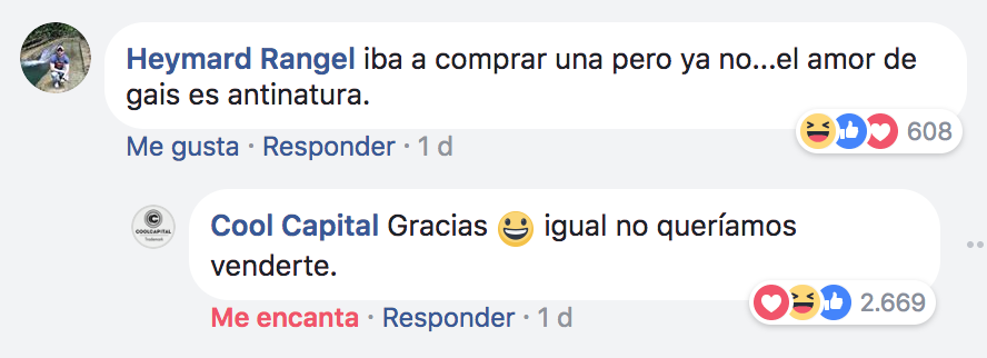 Claro que hubo quienes no estuvieron de acuerdo, sin embargo Cool Capital respondió genial…