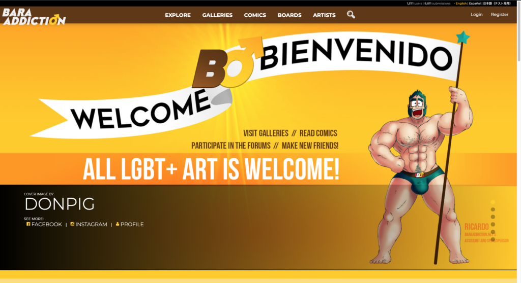 Baraaddiction.net es un sitio de internet, creado por DonPig, que fue lanzado a inicios de este año para ayudar a promover artistas LGBT+ y sus trabajos a través de lo que su creador llama, “una plataforma simple, fácil de usar y divertida”.