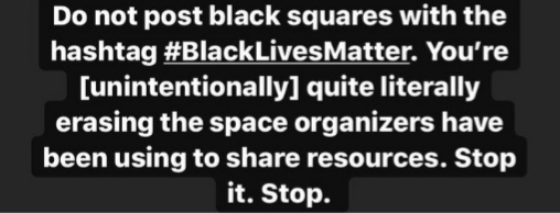 Pero luego de ver la respuesta en redes sociales, distintas celebridades y usuarios instaron a la gente a NO usar este hashtag acompañado de una imagen totalmente negra.
